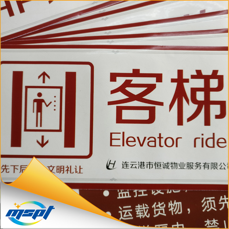 - 油墨特性:耐油污,耐刮擦,耐曬